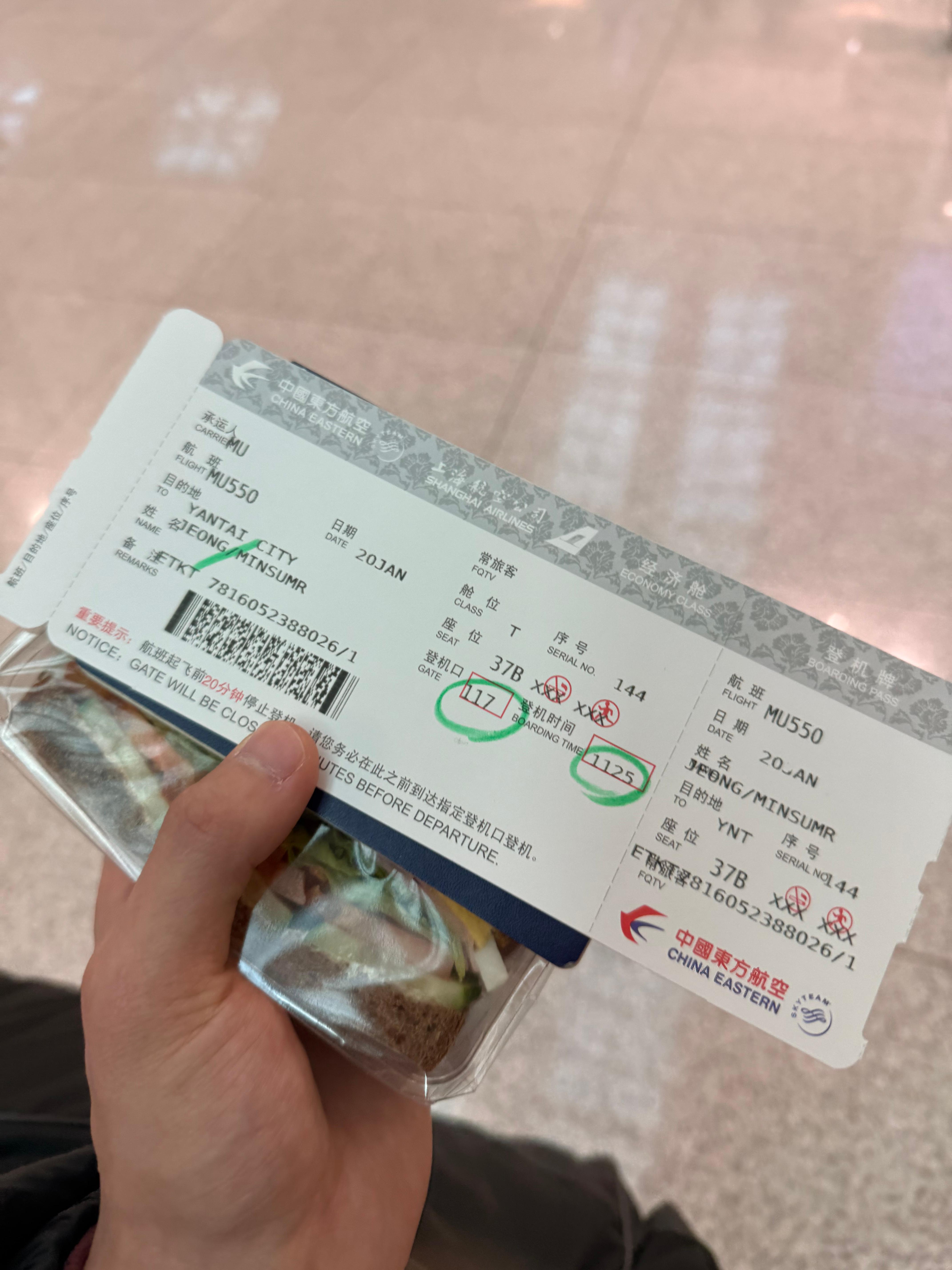 "중국동방항공 체크인을 진행..." 까지 말 하자마자 K구역으로 가라고 해주셨다. 굉장히 피곤해보이셨다.